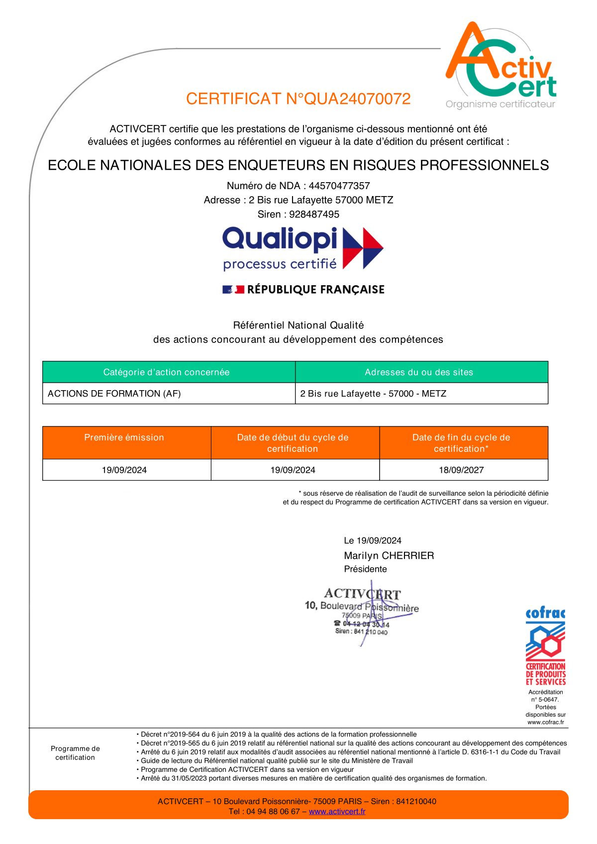 L’ENERP, en partenariat avec l’IAE Metz School of Management de l’Université de Lorraine, se situe au cœur de Metz. Notre formation harcèlement au travail forme des futurs enquêteurs sur 5 mois, à raison de 4 jours par mois, capables de diriger en autonomie des enquêtes sur des situations de présupposés harcèlement moral ou sexuel, discrimination ou sexisme, notamment en milieux professionnels.
